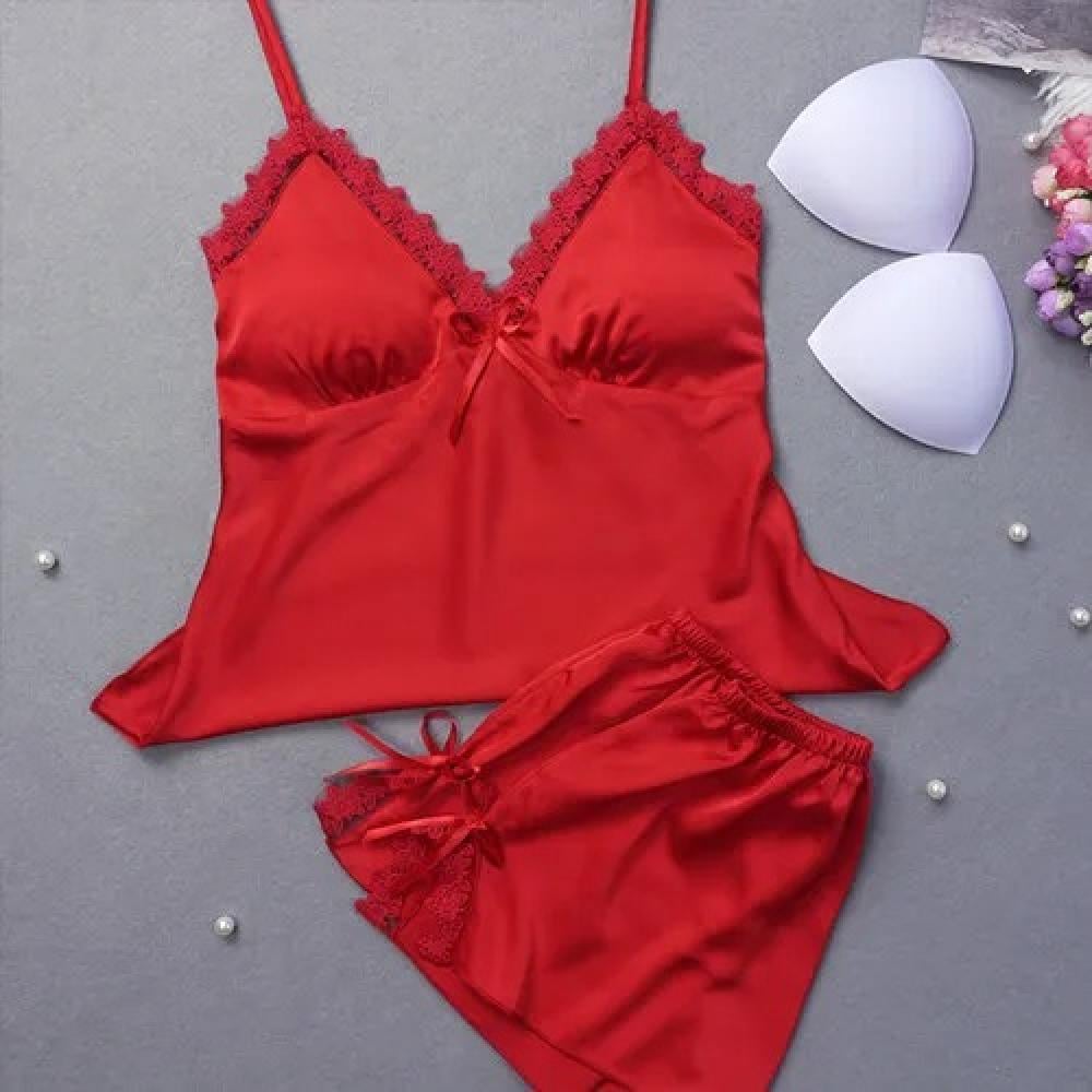 بيجامة نسائية فاخرة تتميز بتصميم أنيق ومثير، مصنوعة من الحرير الناعم والدانتيل الفاخر. تتألف هذه المجموعة من قطعتين: توب بدون أكمام مصمم بعناية ليوفر إحساسًا رائعًا بالراحة والأناقة، وشورت قصير يضفي لمسة جريئة ومغرية. هذه البيجامة هي الخيار المثالي للمرأة التي تبحث عن مزيج من الأنوثة والراحة في ملابسها الخاصة، سواء كانت للاسترخاء في المنزل أو للظهور بإطلالة راقية وجذابة أثناء النوم. ستضيف هذه البيجامة لمسة من الفخامة إلى مجموعة ملابس النوم الخاصة بك.
