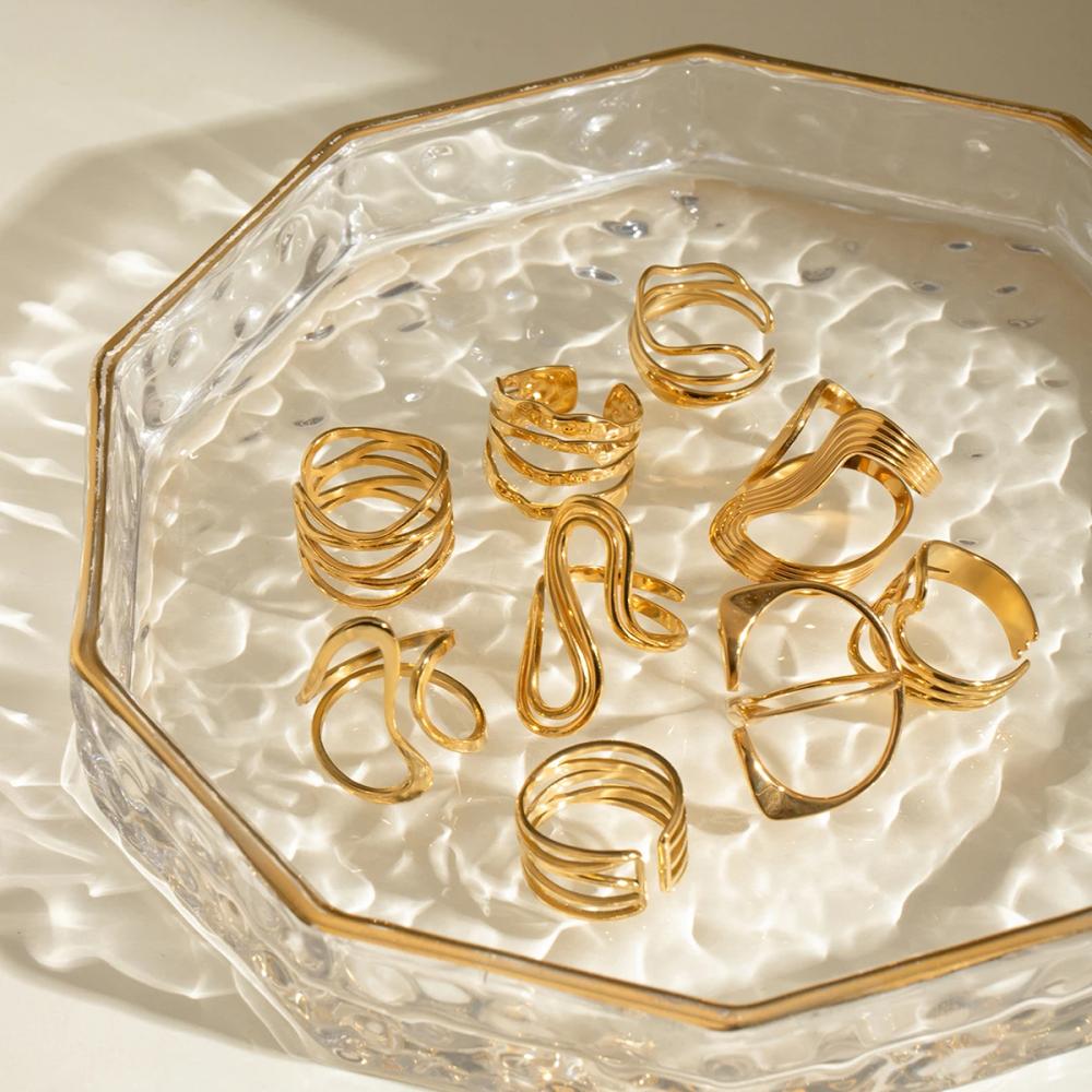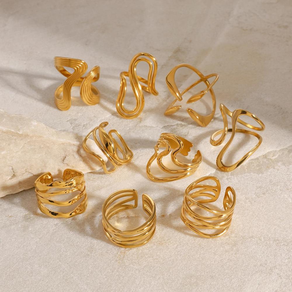 خواتم للنساء مكدسة غير منتظمة هي قطعة مجوهرات عصرية ومميزة للنساء، تتميز بتصميم فريد يجمع بين البساطة والجرأة. يأتي التصميم بشكل هندسي مبتكر مع تفاصيل غير منتظمة تضفي لمسة من التفرد والأناقة. الحلقة المفتوحة تضيف لمسة من الحداثة، بينما يضيف شكلها المكدس لمزيد من التميز والروح العصرية.